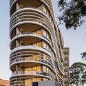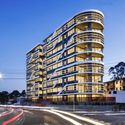 来自建筑师。Bankstown Gardens 是一个9层高、拥有54个单位的特色公寓项目,坐落于一个经过景观设计的花园中。建筑位于悉尼 Bankstown 的一个显眼角落。建筑的角落曲线处理是为了强化其形态,以及把建筑呈现成附近街景中的一个门户。充满活力的设计使用了拥有日光控制功能的散热板,来在外墙上创造出令人激动的横饰带。对角线走向的几何形状不但清晰勾勒出外墙,而且使大幅度的玻璃装配和户外植物栽种变得可能。此材料的通透性与白色隔板的并置赋予了外墙轻盈生机。