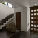由于场地的坡度较大,住宅内部被划分为三层。通向地下车库的入口位于较低处,主要生活空间则位于场地内较高处,以便欣赏周围景观。服务空间、公共和私人空间设在同一层,通过两条互相垂直的走廊连接,形成了建筑设计的主要轴线。走廊将空间分隔为两个公共空间和两个私人空间。