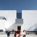 设计中,我们利用白色墙面与黑色楼梯的反差,弱化内部空间的形态,强调观看过程中的路径,也正是这条路径使得室内的物与室外的景被紧密关联在一起,让风景也成为展示的一部分。顶层平台,借景于远山,以期通过观展行进中的运动过程唤起一种置身山体之中的攀登感,高窗的漫射光则是对游历者产生了向上的引力。