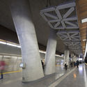先锋村站和芬奇西站 Finch West(见下图)都是经过了精心设计的混凝土结构建筑,其中先锋村站的内墙都经过了雕琢,混凝土也经过了高抛光处理,而那些沿平台长度排列的柱子也都是呈卵圆形并带有角度的。