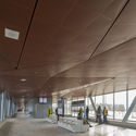 地铁站的入口是一对雕塑状结构。 其高度能让人们远远地就能看到它们 —— “我们从教堂建筑学到了很多东西”,Will Alsop 说。 这两种结构在耐候钢的作用下,其形状和大小相互映射。车站的顶棚也是用耐候钢制作,它采用了一个大型悬臂式屋顶,其表面上还种植着草地。这样创建出的“绿色屋顶”可以为候车的乘客提供一个很好的庇护场所。