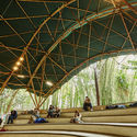 这座竹制室外阶梯空间结构,上部为可伸缩的自由形式屋顶,跨度面积达17米×12米,总面积达200平面米。巴西地处于热带气候,该项目位于巴西里约热内卢天主教大学的绿色校园内。校园建于名为Rainha River的河岸边,场地倾斜。由建筑师Carlos Pingarrilho设计了竹结构的基本形式。结构设计运用找形分析(form-finding),结合实际模型与电脑模型。