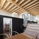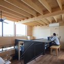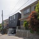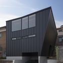 在日本横滨,经常都是在下雨,这面斜墙可以作为通往屋顶的入口。垂直侧板被当作结构支柱(38X235@455)。