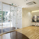 我们的设计树叶作为基础图案,并着重与创造出令人舒爽的空间,以自然、青春的氛围来欢迎来这里处理事务的顾客。建筑的立面设计则呼应了树的剪影,并运用了或大或小共计14种不同颜色的窗户,每一扇窗户都是与众不同的设计,合在一起则极富韵律,这也让建筑立面成为了一个标识。
