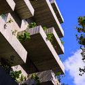 上层的住宅是一连串水平的混凝土景观阳台,这些阳台在建筑立面上错落有致,并种植了茂密的Cilandra和 蔓长春花为居民创造了私人植物空间。错落的形式在公寓之间形成了一个自然的立面,并向街道正面展示了一个“有生命的建筑”。