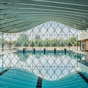 游泳池的主大厅,就像一个永恒的庇护所,它通过观察自然形态进行设计,并与自然环境融为一体。