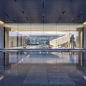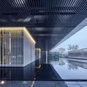 立面基本元素为象征江南的“瓦”,设计师 “以意补形”,运用参数化设计,将月牙状挂件和不锈钢细立柱拼贴成优雅写意的水纹立面,实现建筑的景观化:温润的光泽下,仿若精雕细琢的羊脂勾玉,氤氲出一片江南烟雨。