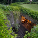 “变色龙别墅”(Chameleon Villa)位于巴厘岛西南沿海地区内部的郁郁葱葱的谏义里村。这座别墅建在一英亩(4050平方米)的土地上,俯瞰着茂密的森林和下面的河流。别墅坐落在陡峭的等高线上,在到达区和流经西部的河流之间有11米的距离。考虑到如此壮观的地理位置,我们面临的挑战是如何创造一个真正与周围环境相联系的建筑,并与基地的地形相结合。