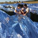 这条“毯子”长和宽都是100米,是用美国宇航局(NASA)的3350块太空毯和40公里长的加固胶带制成,它希望能够成为一幅超现实主义但又实用的画布,无论是白天还是黑夜。