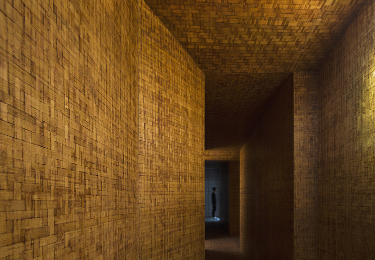 材料上,整个项目仅用四种常见、低廉的工地材料:轻质水泥砖、竹模板、中空阳光板以及木质夹板,完成空间建构。