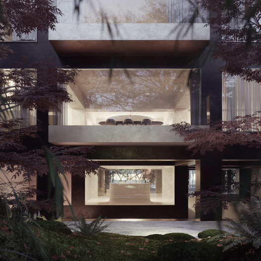 我们不想过度设计或去固定某种生活方式。建筑的内部拥有11间公寓和2套顶层复式豪宅,每套住宅都是宽敞而通风的开放式房型,极高的天花挑高空间,同时,落地窗可俯瞰窗外的树木,在生活与自然之间舒缓共生。 所以在原本的结构下,室内则采用最简洁的材质,回顾历史之下,亦能更好的审视内心,着眼未来,把永恒不朽重新诠释为一种新的产物。