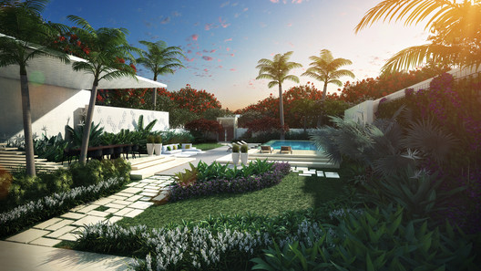 在住宅塔楼下方,“空中庭院”包含所有公寓居民都可以使用的设施。住宅裙楼设有独特的“复式”联排别墅,每栋联排别墅都拥有自己的花园,享有泻湖的景色,并设有私人通道。由于裙房的小尺度并且采用精致的工艺材料,人们从地面郁郁葱葱的景观花园中,可以体验到建筑更加富有亲切感和奢华感。