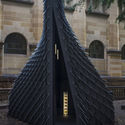 英国设计师和建筑师 Thomas Wing-Evans 与 DX Lab 合作为澳大利亚新南威尔士州立图书馆创造了一个互动声学展亭,展亭将图书馆收藏的绘画转变成音乐。Wing-Evans 设计的展亭位于悉尼 CBD 的 Mitchell Reading Room 的外面,曲线黑色木框架,外覆无光泽的阳极氧化铝瓦片。Wing-Evans 与 Sonar Sound 合作,研发了一个电脑程序用以将视觉信息转化为声音。图像被分析以获取复杂度、色彩、色调、人脸检测等视觉信息以及日期、地点、主题等元信息。