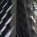 “视线高度的开口允许路人向内窥视,访客向外张望,这是使空间展现欢迎姿态的关键。夜晚,根据音频变化的光线在表皮上跳动,吸引访客以一种全新的方式体验州立图书馆的画作收藏。”