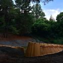 沙上有三个元素,一个垂直的和倾斜的轴,暗示着下降,另一个相似的物体。两者都用松木框架支撑和控制边缘,第三个是岩石,标志着两个体量之间的连接点,并形成项目的平台。另外还使用了钢条,将泻湖的神话书写下来,讲述这个地方的故事,并构成了这个作品唯一的水平面。