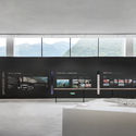 建筑沿山势形成3个主要的室内标高,由两个直跑楼梯衔接各层空间。一侧的办公区楼梯连接入口大厅、展览区域及办公区域; 另一侧直通展览区域的公共楼梯是展示空间的一部分,将展览流线流畅地从入口大厅延续至大展厅以及室外的观景平台,形成连续性的观展体验。