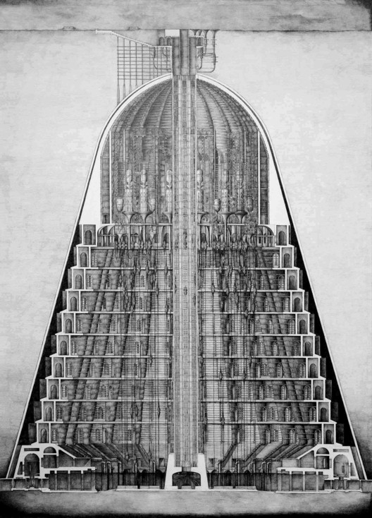 该虚构设计旨在复活在人类尸体上捕食的濒临灭绝的秃鹫,以及它的宗教作用。这个“筑造秃鹫”的埋葬过程包括一些人体分解新技术,比如说冷冻干燥,液化,以及把人体转化为粉末或液态营养物质。