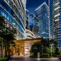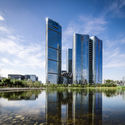 成都的文化渊源与场地逻辑上的内在关联性,通过提取文化元素并重新诠释来实现。精致、慢节奏的生活方式,作为成都的文化特色之一,成为建筑语言表达出细腻丰富的表情——“蜀绣”这一当地文化在玻璃幕墙上的运用更是整个建筑群的一大特色。整体建筑设计既注重空间和造型的高效性,又注重建筑细部对于建筑整体的影响。