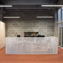因此,整个项目的主要理念是创造一个开放和连续的公共空间,封闭的工作区域与其相连。这个开放空间以两种方式贯穿整个建筑:水平与垂直,将内部与外部、物理和视觉感受连接起来。光线通过墙,楼板或者屋顶上的孔进入到室内,照亮整个建筑内部空间。建筑形态上的连续性打造出了一种透明感,简单的大厅和活动空间将变成公共空间。这种空间上的连续性(或无限性),成为一个公司发展、成长上的美好寓意。
