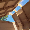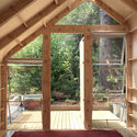 IMBY™的核心是一个由FSC认证的人工林松木胶合板制成的结构模块(或“弯曲结构”),它们分层排列,形成一系列支撑屋顶、墙壁和地板包层和内衬的门式刚架。这些结构可以根据空间需求增减,多个IMBY也可以并排放置以进一步扩大建筑面积,或者围绕户外空间或庭院布置,来创建一系列亭子。互锁的木节点构成了美学的一个整体部分,并为工具箱的直观组装过程提供了主干,使没有受过施工培训的人也能快速组装构成主要结构的元素。