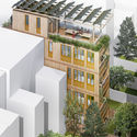 描述:我们的设计推动了环境友好的极限,探索了新的经济的建造方式和材料,为当今市场提供了“非传统”住宿,在建造和培训中吸引了当地社区资源,并通过建立差异化的社会和物质环境来寻求成为邻近地区最好的住宅。除了带来差异化生活方式的住宅外,我们也研究了“零碳”建筑和它的基础设施。独立的单元是通过共享空间扩大的一个个小loft,包括一个首层的共用工作室或会议室、宜人的外屋顶和一个为客人准备的小“旅馆”。我们特别致力于为这个特殊界墙形式的采光提供一种新的原型。