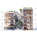 描述:当你只有有限的空间你会怎么做?你会折叠和堆积。我们的方案试图将场地的小面积从设计障碍转变为设计的催化剂。通过采用一种双层的特殊单元,“折叠和堆积”尝试最小化单元面积,将服务合并到模块化的湿芯中,并在尽可能多的场地中最大化可重组性。双层的设计更多地将单元带到室外,从而获得更多自然光和通风。预制原件和交错层压木板的组合带来了更快的建造和最少的劳力。