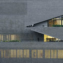 建筑的界面由人工烧制的灰土砖砌筑而成,这种敏感而朴素的材料,使得每块砖展现出它烧制成型的微妙过程。除了标准的平砖幕墙,两种其他的砖墙肌理也出现在外立面上。
