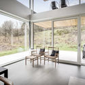 从这个入口区域,一条狭长的混凝土通道径创造了一条穿越场地通往房屋主入口的路线,在这里混凝土成为了建筑平台和整个建筑底层的地面材料。 设计中使用的材料经过精心挑选,用以反映其自然环境的色彩。 与外观设计一样,房屋内部设计也考虑到了与周围自然的关系。 通过高达7米的天花板高度,社交式厨房与房屋二层和底层相连的室外露台建立了开放式的连接。