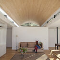 在室内,带有餐厅,起居室和游戏室的公共空间是连续和开放的,但是每个功能区被天花板拱顶隔开,并垂直于一般空间。 通过支撑和拱顶的最高点所达到的不同高度创造出不同方向和高度的开窗,这有利于与室外环境的连接同时让自然光充分的进入,这改变了白天的空间的光线气氛。 从外部看,拱形中厅被涂成白色,并留下砖纹理。 另一方面,具有平屋顶的循环空间使横向砖块在暴露在视线中,使两个系统之间产生差异。 内饰饰面采用简单却高贵的的材料,就像陶瓷制作中使用的一样。