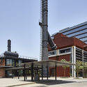从前的两个发电厂和一个锅炉分别被改造成工作室、车间和咖啡馆。一座带有昔日美学气息的高大烟囱被视为一种图像化的纪念。如今工作室中还保留着原厂的百叶窗,将耐用钢重新利用并穿孔。该设计模拟了雨豆树的树冠过滤光线的效果,随着时间的推移而变化,并将空间与关键的记忆联系起来。新的室内设计灵感来源于占据场地的圆柱形金属筒仓的“记忆”。这些形式的的剪影提供了与建筑刚性几何形状的对比,也因此表现为一个植入的雕塑。