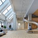 探索和运动区是幼儿乐园的重点区域。在这个开放式的,明亮而怡人的活动区,可以容纳多种运动方式:纯粹运动的方式、感知触觉的方式、还有安静的方式。一面可以围着柱子自由的奔跑,捉迷藏;一面也可以安静下来,进入教室或图书馆,去观察空间中“飞翔”的书本、小鸟、云朵。这里不仅仅是幼儿园,也是从家到外面世界的过渡,是可以盛放他们童心、童趣的空间容器。