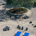 类似于电脑芯片的构件,广场上摆满了各种各样的家具设施,能够服务于不同程度的互动和任务。学生被想象成电子或信息单元,他们在循环和交换中形成了一个更智能的复杂网络。