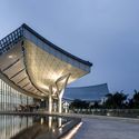 建筑形体在遇到场地内横贯的一段红树林湿地时,采取了连廊和屋顶最大达60余米的双层高跨方式,寻找到建筑与环境的双赢,获得了难得的半室外景观空间和新奇的视角。
