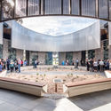 新设计的圣天使陵墓中庭概括还原了一个有着几千年历史的传统:将埋葬的地点排列成一个圆形或环形。陵墓被设计成是对外开放的空间,并能从罗盘上八个不同的入口进入其中,这些对称轴线还提供了戏剧性且有冲击力的框景,从新中央庭院看向建筑外围的框景,反之亦然。整体主要特点是使用天然材料所带来的整体自然风格的色调,给人以舒适和温馨的氛围。