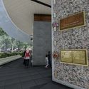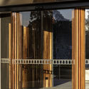 使建筑融为一体的建筑元素包括遮蔽内外画廊的穿孔不锈钢“窗帘”,以及通往主要入口区域的实木内衬天花板和抛光处理的特色墙。纪念墓穴的表达被对比鲜明的条带状彩色抛光花岗岩所演绎的鲜活且有个性。而墓地的朝向不仅面向内部庭院,还会朝向周围墓地景观来增强的和环境的联系。陵墓的设计与附近的Harmer建筑事务所设计的神圣天使陵墓紧密相关,更与圣加布里埃尔礼拜堂(Chapel of St. Gabriel)的后部照相呼应,因为它也以圆形布局和内部庭院而闻名。