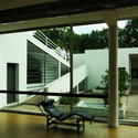然而,一旦进入室内,就能清晰地理解公共空间和私人空间之间在空间上的相互作用。一般来说,房子的居住空间是相对私密的,封闭的,相对隐蔽的。但柯布西耶将起居空间布置在了一个公共的室外露台周围,这个露台与起居区之间由一面滑动玻璃墙隔开。