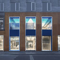 追溯项目本源,设计师以起承转合的序列式观景节奏,注解建筑的艺术语境。旗舰店的外立面保留了建筑原始灰砖,同时穿插砌入金属砖块,不乏传统的美感,又不失年轻的气息。