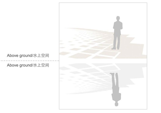 有关水系的联想贯穿整体空间,包括镶嵌在一层水磨石地面上的黄铜圆环,仿佛湖面上一圈圈荡漾开来的水波。设计通过材质的反转将地下两层打造成一个“海底世界”,从而与地上四层形成对比:在地上层中闪闪发光的水磨石瓷砖,到了地下空间则倒转成天花板的用材;此外还有反光不锈钢,以更柔和的色彩唤起神秘水下景观的气息。