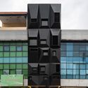 来自建筑师。QUB酒店坐落于印度尼西亚三宝垄市中心商业密集地带,它是一家有着10间客房的酒店。该建筑的前身是一座普通的三层商店,现在,这里被改造成为一个充满工业风的别致酒店。酒店的立面也别具一格:立面上由多个不同尺寸的窗口组成,每个窗口外有着造型各异黑钢框架,以此与90年代建筑的白色瓷砖和蓝色玻璃立面形成了意想不到的曼妙对比。酒店完美地融入城市的肌理之中,大小各异的方形(‘QUB‘IC)窗口则镶嵌在立面之上,从而模糊视线,隐藏立面背后楼层的真实位置,并“拉高”建筑的尺度感。