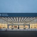 多功能馆总面积7726m²,由清水混凝土巨型结构的大厅和若干被红色陶板包裹的一层框架结构的房子组成。预应力混凝土技术实现了大厅38.12m的跨度。